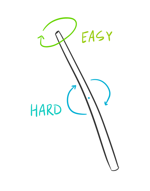 In real life, if you spin a broom 180 degrees along its length; that's easy. But if you spin it 180 degrees along any other axis, like a ninja, it's considerably heavier.